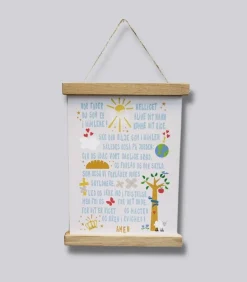 Køb evt en ramme med plexiglas, og giv den med, så forældrene kan hænge den op ved sengen og gøre det til en god tradition, at bede Vor Fader sammen.