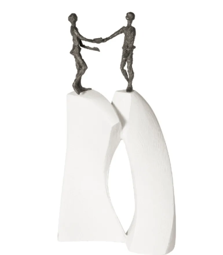 “At række ud din hånd” betyder at bygge bro over hullerne. Øjenkontakt og håndtryk skaber en forbindelse mellem mennesker. Hver person har sin egen plads, sit eget fundament. Men begge har en fælles grund.