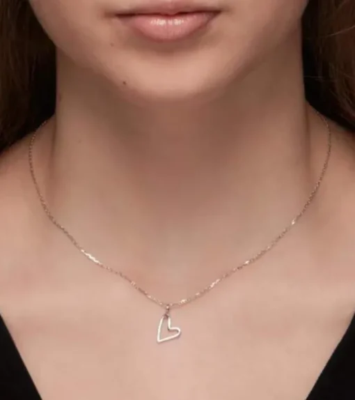 Sød halskæde i sterlingsølv, med et hjerte vedhæng på skrå, og et let design.