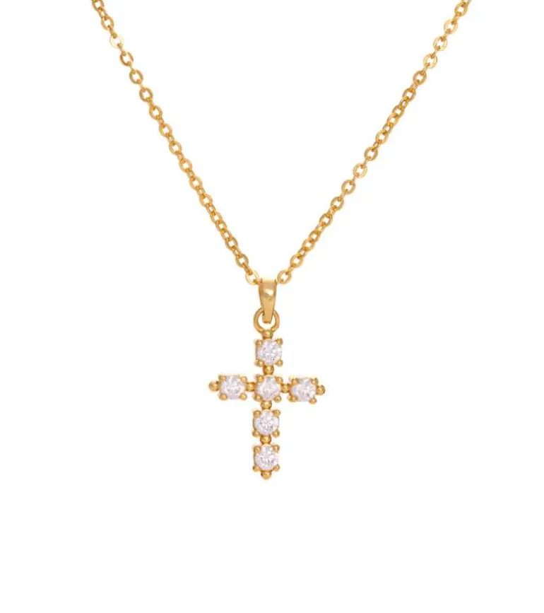 Enkelt, klassisk lille kors i guldbelagt sterlingsølv og med klare zirkonia krystaller.
