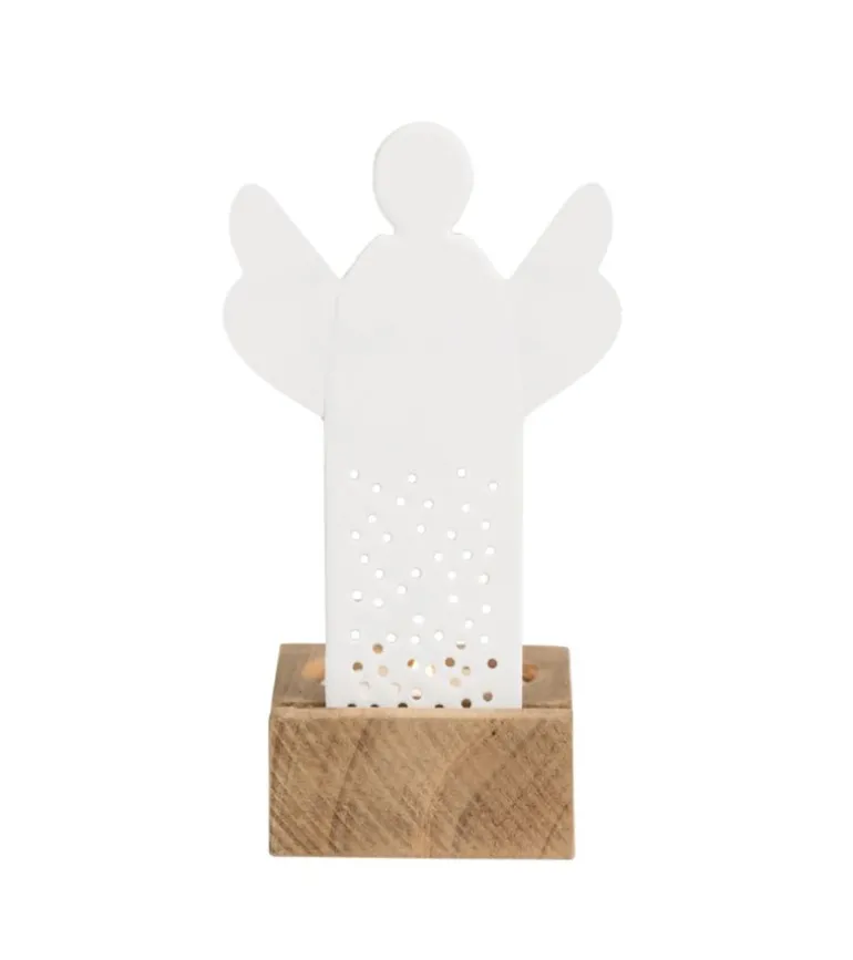 Smuk og enkel engel, hvor der kan sættes en LED fyrfadsstage bag ved, så der kommer et fint skær.