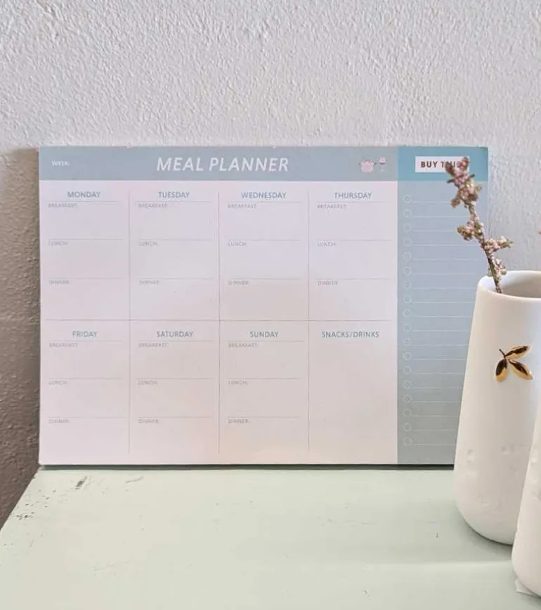 Få styr på ugens madplan. Her er en flot blok med plads til notater, indkøbsliste og hvad skal vi have at spise.