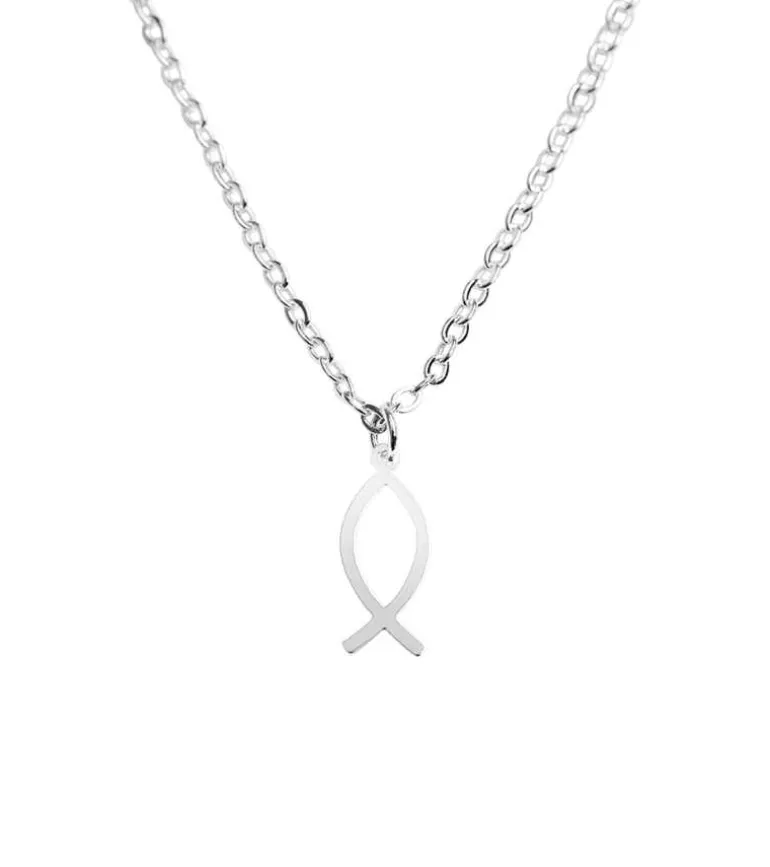 Fin halskæde i sølv med fiskevedhæng/ichthys.