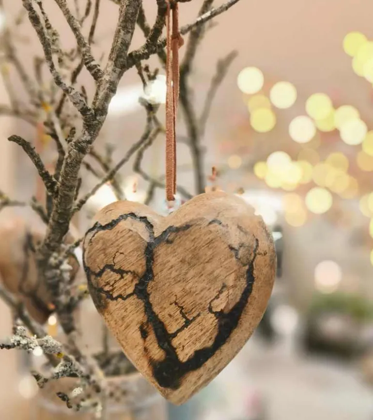 Hjertet er lavet af mangotræ. Og hjerterne har for det meste en ensartet side og en side med mørke fuger. Dette gør hjertet rigtig fint. Og kan derved symbolisere det gode og det onde.