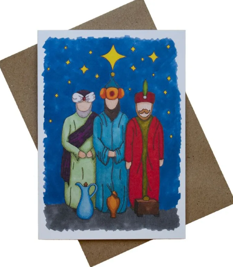 Smukt julekort med De Tre Visemænd.