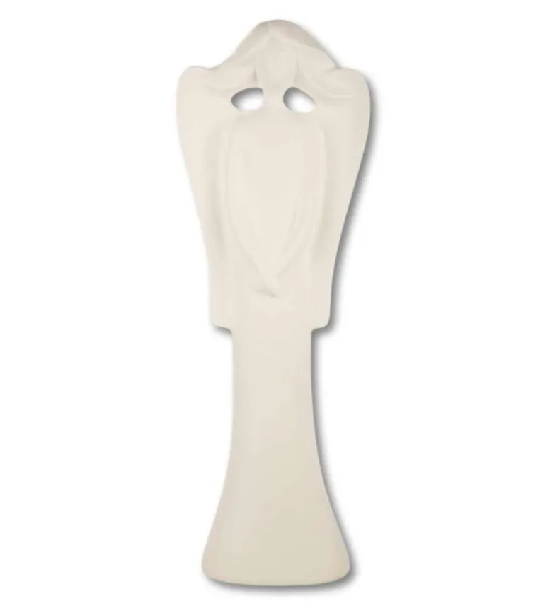 Englen er lavet i hvidt keramik fås i 2 størrelser. Den “lille” måler 56 cm.