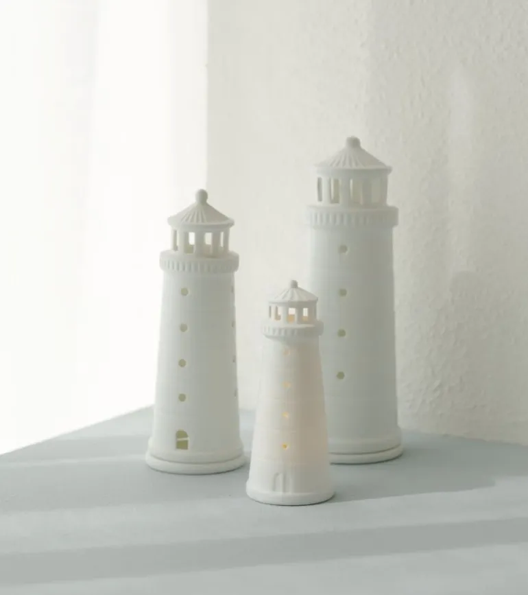Fint håndlavet fyrtårn af hvidt porcelæn, der symboliserer de holdepunkter vi har behov for i livet.