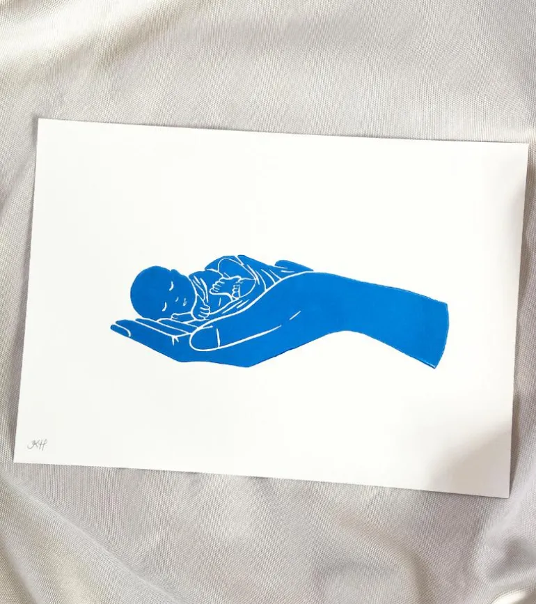 En fantastisk barsels- eller dåbsgave som symboliserer barnet i Guds hånd.