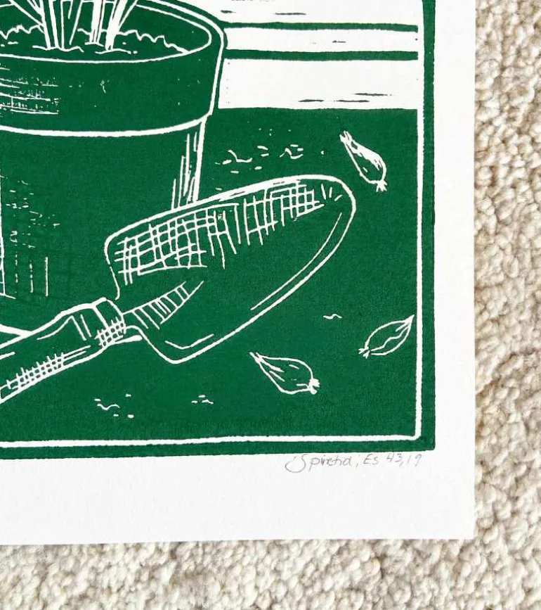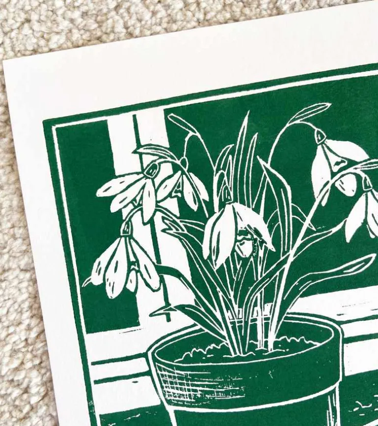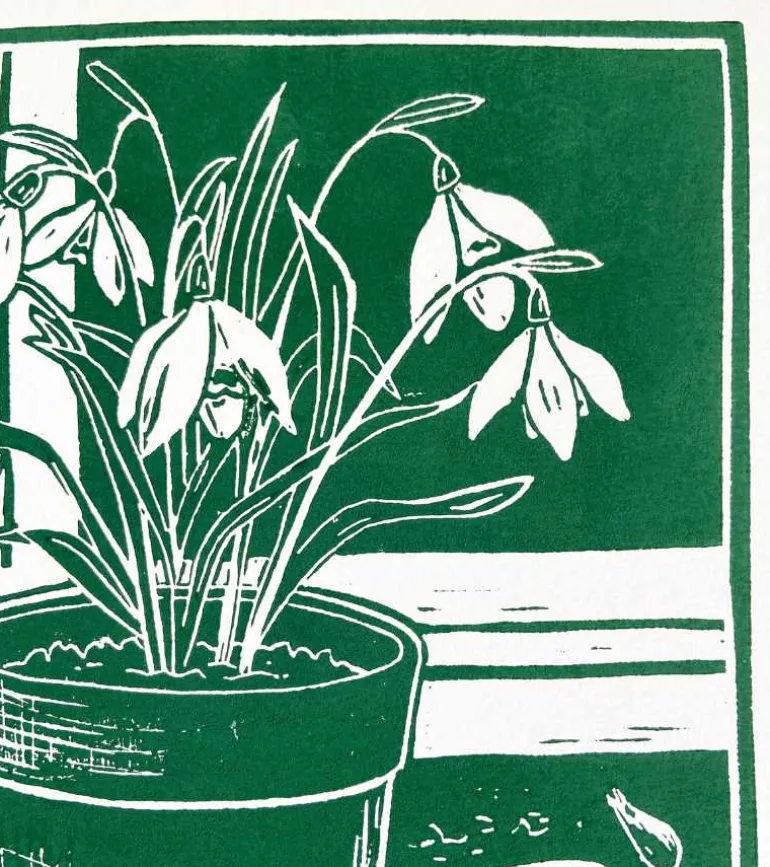 Dette smukke linoleumstryk er håndlavet af sognepræst Inge Marie Kirketerp Hansen på kraftigt papir.
