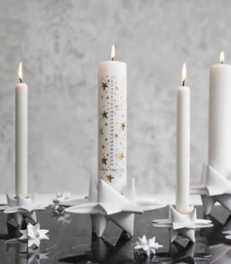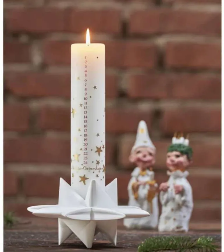 KØB Medusas stjerne-kalenderlys der passer til. Eller brug et hvidt bloklys til