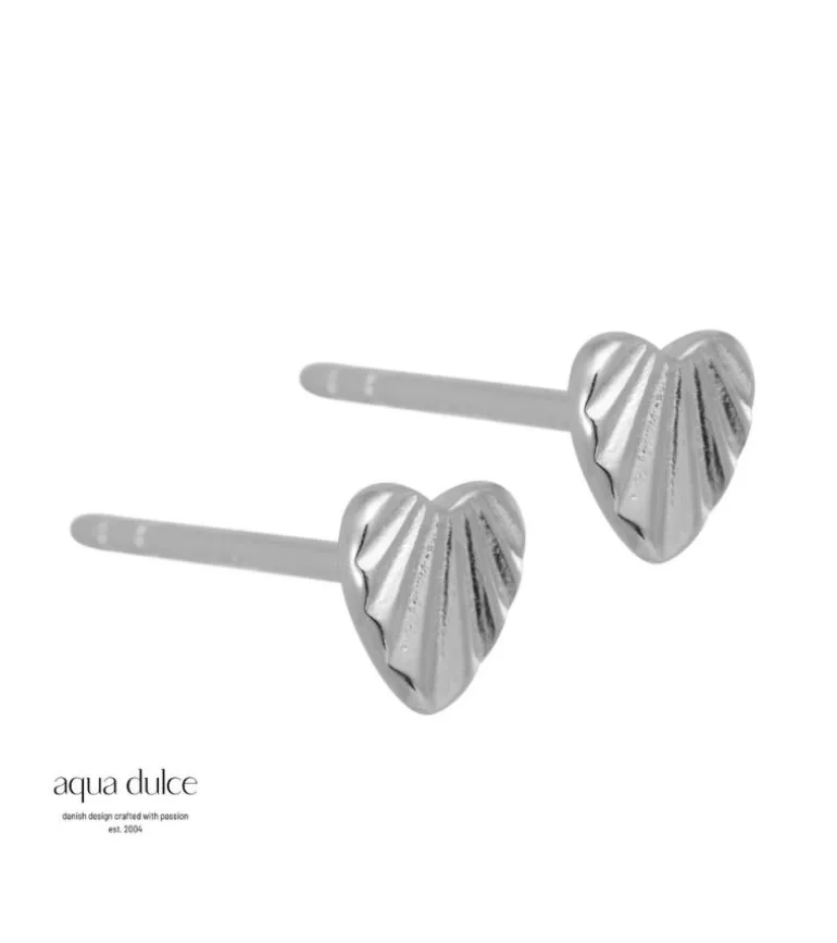 Søde hjerteformede ørestikker i 925 sterling sølv. Hjerterne er detaljerede med små riller . De kan bruges alene eller kombineres med andre øreringe, hvis du har flere huller i ørene. Hjerterne måler 4 mm.
