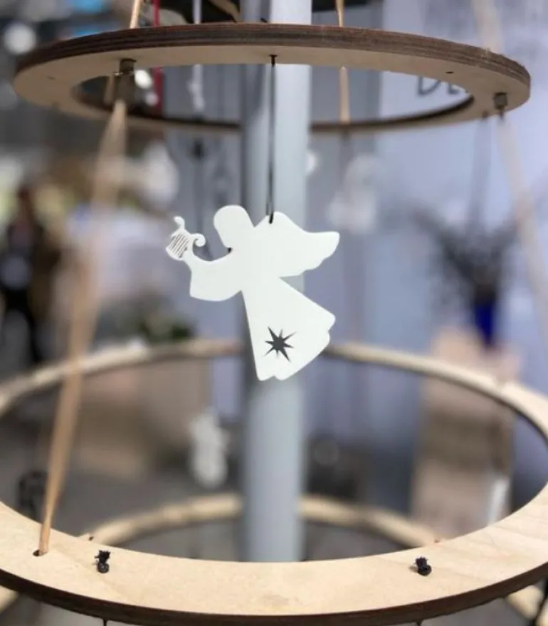 Ophænget har et enkelt og stilrent udtryk. Passer godt til den moderne julebolig. Ophænget er udformet som en yndig lille engel, der spiller harpe. Er smuk på juletræet, i vinduet, en gren, om en lysestage, kun fantasien sætter grænser.