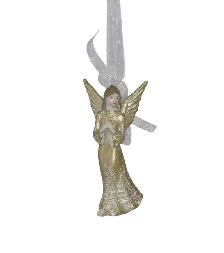 Englen er lavet i polyresin og håndmalet med fine detaljer.