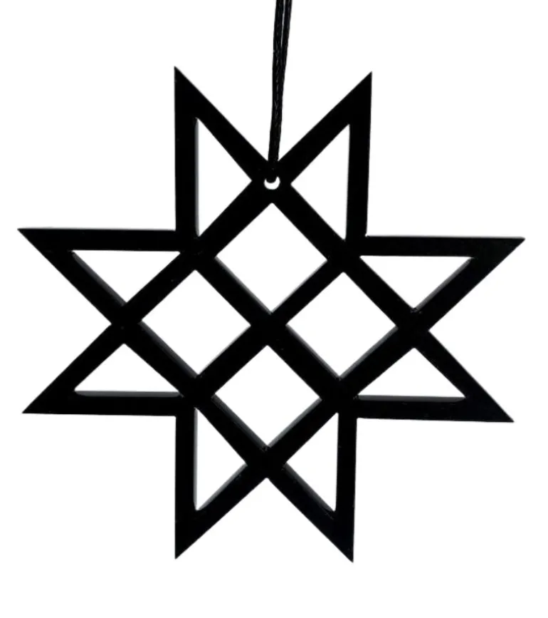 Smuk og stilren sort stjerne, der har form efter en flettet stjerne. Er flot på juletræet, i vinduet, en gren, om en lysestage, kun fantasien sætter grænser.