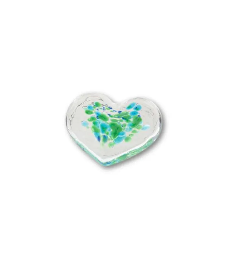 Håndlavet glashjerte i grøn og blå nuancer.