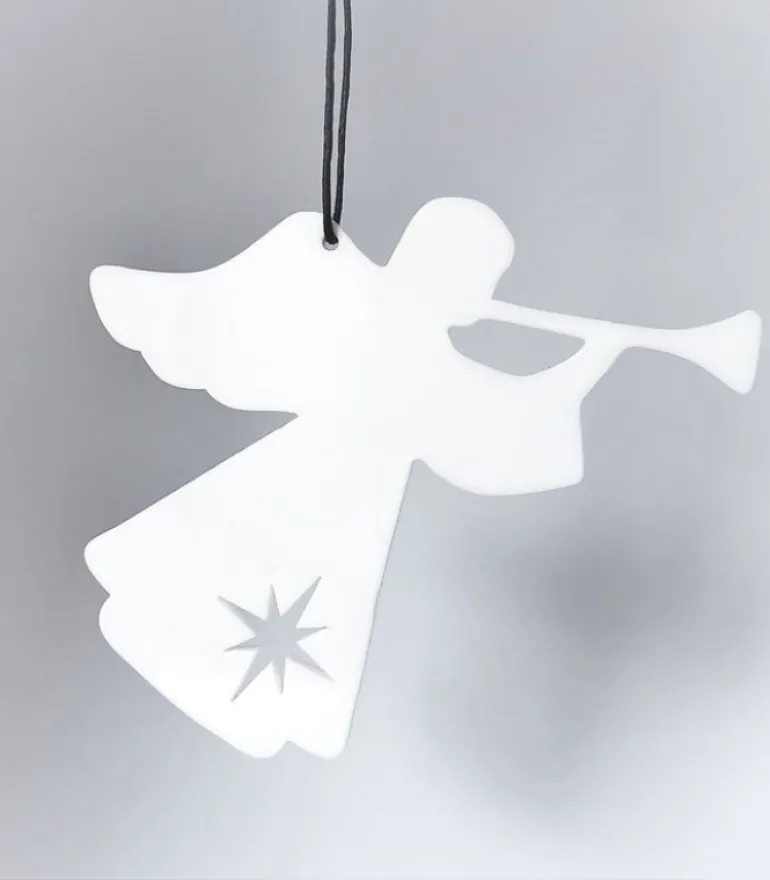 Fin ophæng med en trompet engel. Den har et enkelt og stilrent udtryk. Passer godt til den moderne julebolig. Ophænget er udformet som en yndig lille engel. Er smuk på juletræet, i vinduet, en gren, om en lysestage, kun fantasien sætter grænser.