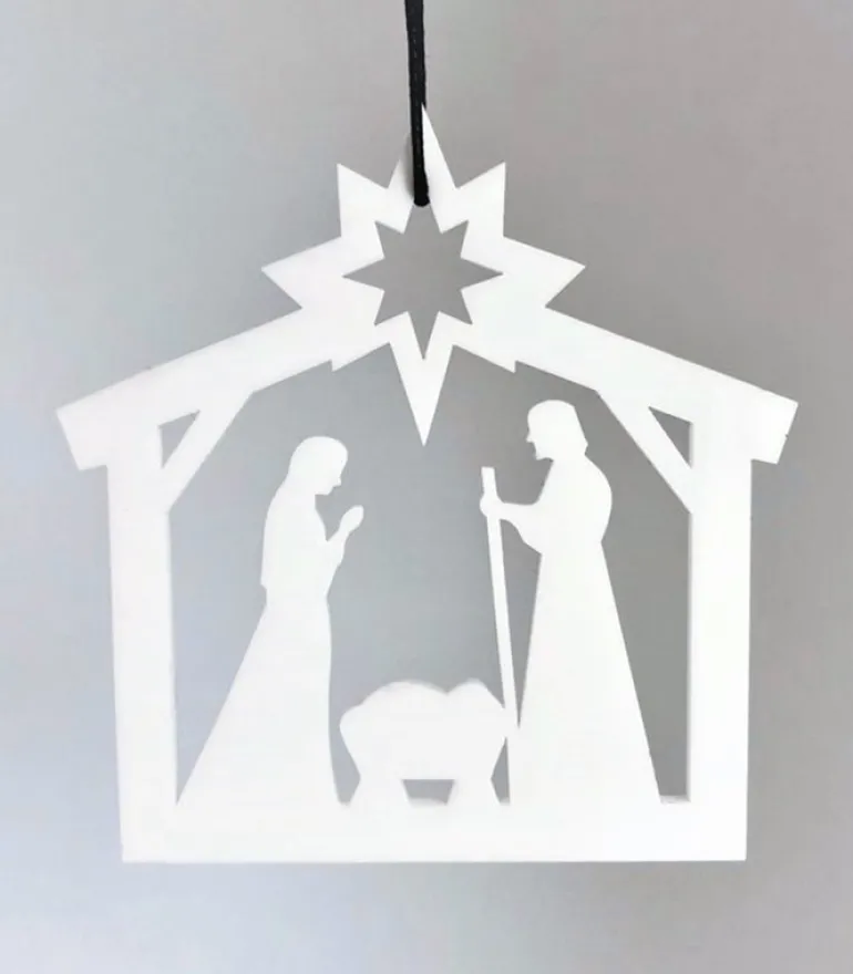 Smuk ophæng med Jesus i krybben julenat. Er smuk på juletræet, i vinduet, en gren, om en lysestage, kun fantasien sætter grænser.