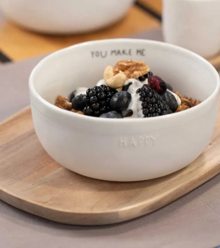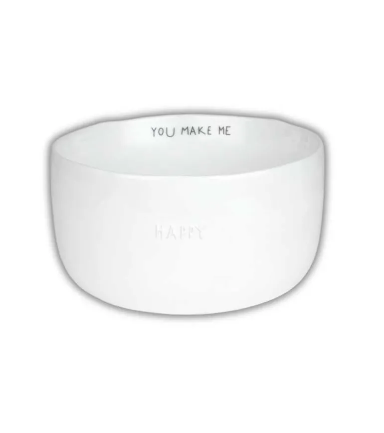 Flot skål til din morgenmad eller en snack med teksten YOU MAKE ME HAPPY er en dejlig påmindelse til dig selv eller en ven, at du er værdifuld.