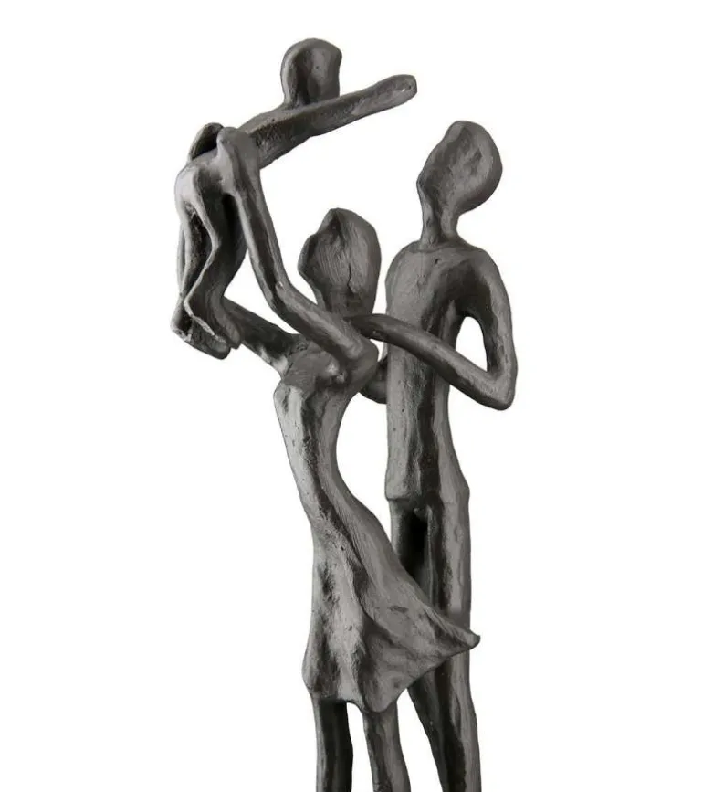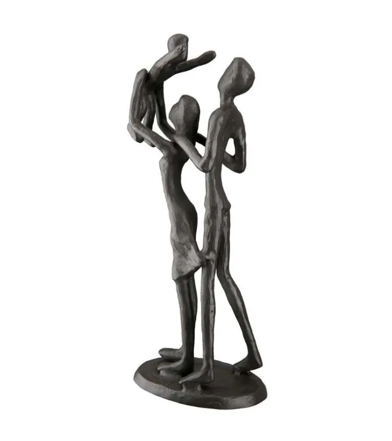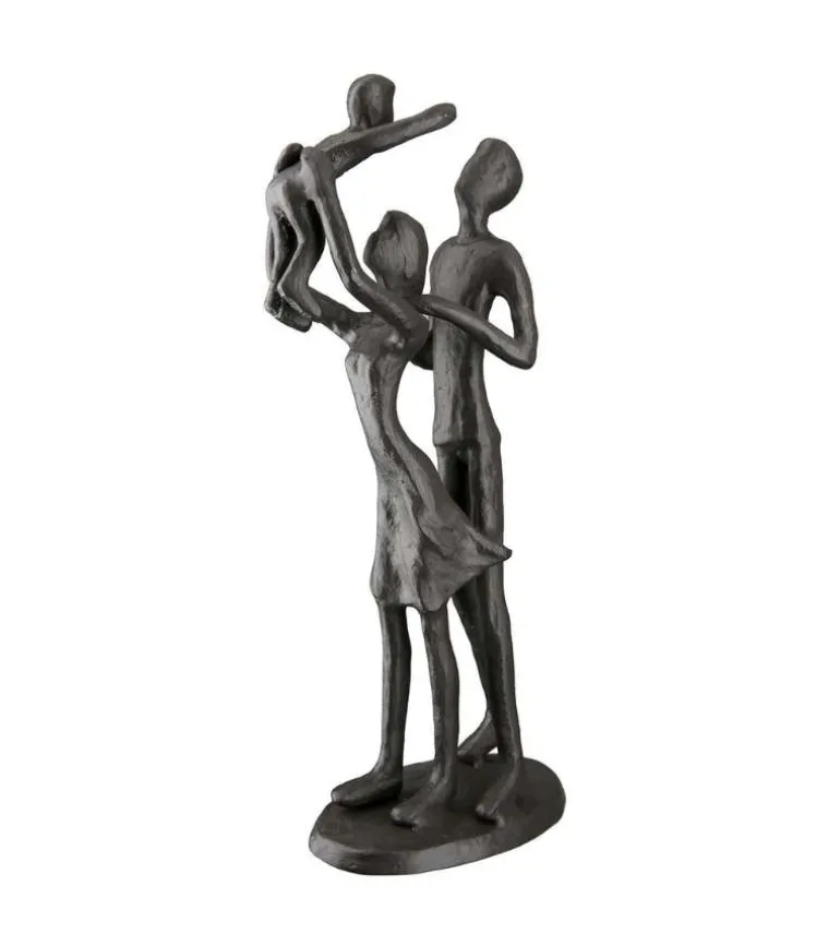 Denne skulptur med mor og far, der har det sjovt med med lille barn er skøn!