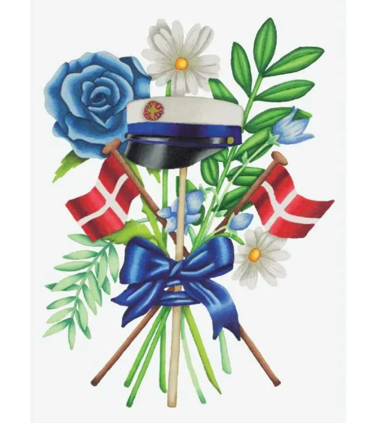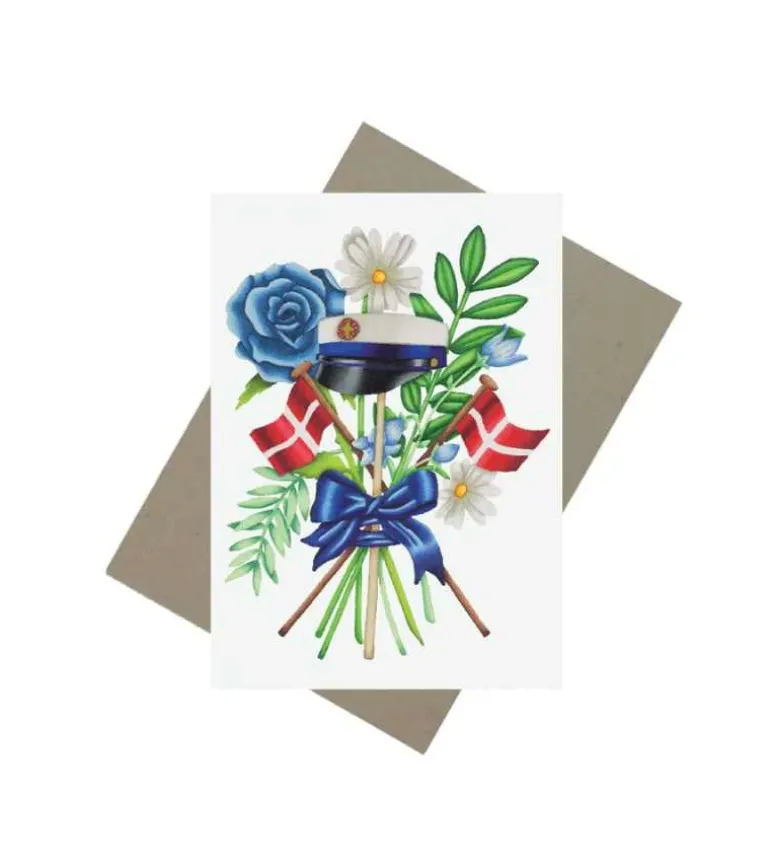 Studenterkort med en blå studenterhue på forsiden.