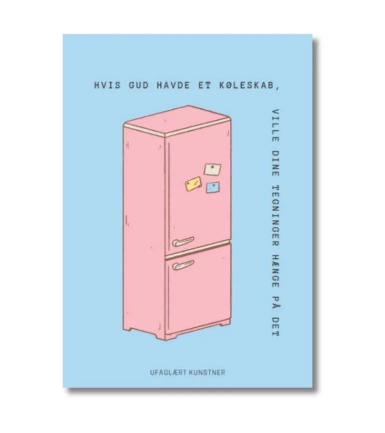 En dejlig humoristisk plakat: Hvis Gud havde et køleskab, ville dine tegninger hænge på det.