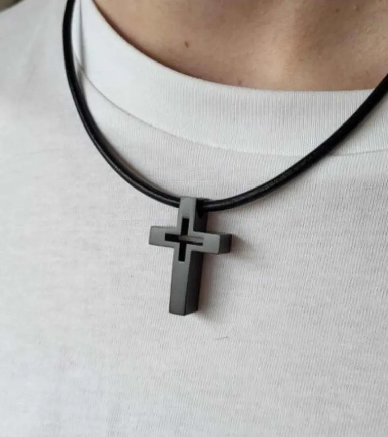 Dette kors har en flot sort overflade og et maskulint udtryk.