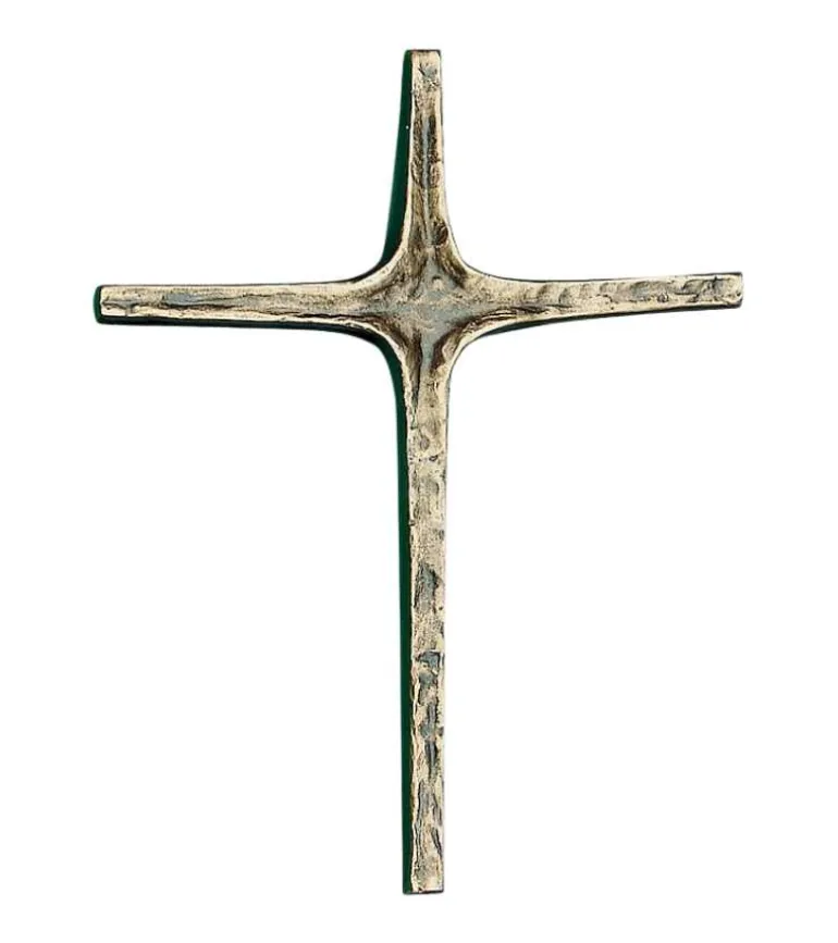 Dette smukke bronzekors er et af vores størrer bronzekors. Den har et enkelt udtryk, og kan hænge i et privat hjem, men også et fint kors til en kirke eller menighedslokale.