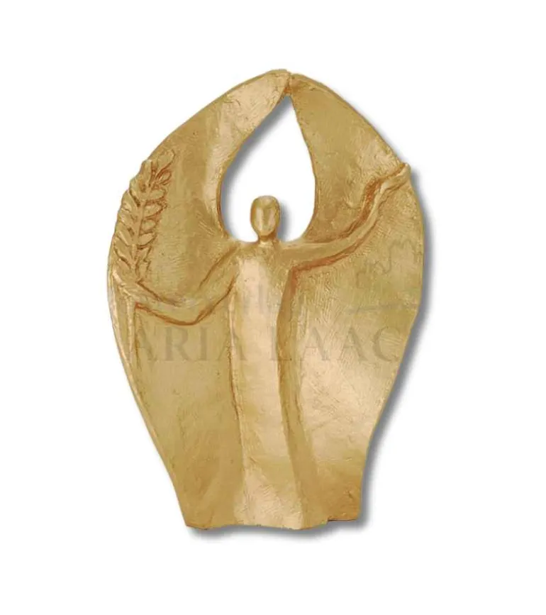 Bronzefigur. Engel med en gren i hånden og store, smukke vinger. Englen er designet af kunsteren A. Zrenner.