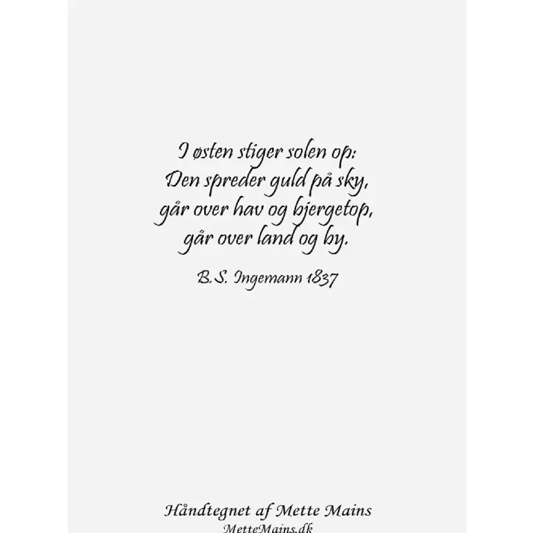 Med første vers af Ingemanns dejlige salme:”I østen stiger solen op” trygt på bagsiden.