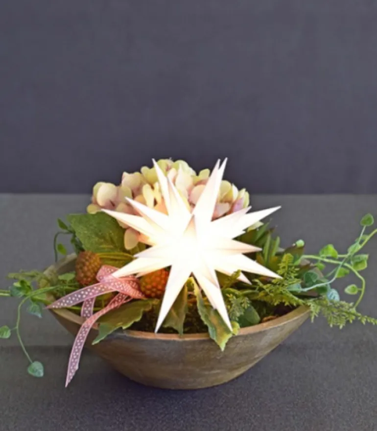 En 13 cm stjerne er rigtig flot, når de hænger et par stykker sammen i eksempelvis et vindue eller i en dekoration.