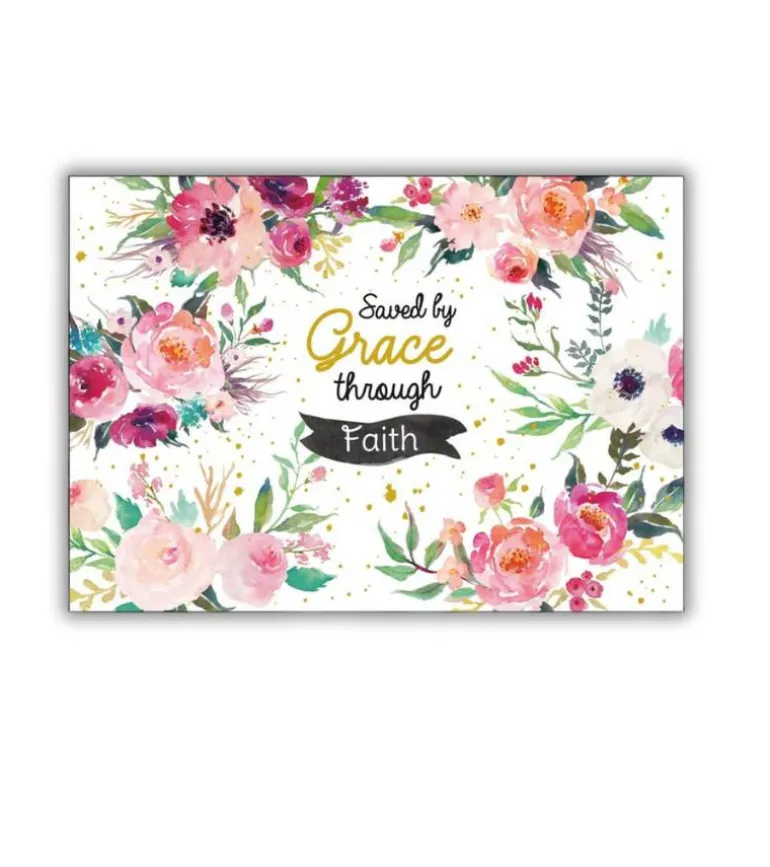 Flot Postkort med teksten Saved by Grace through faith (Frelst ved nåde-gennem tro)